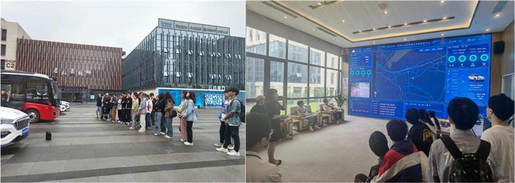 在招商车研的安排下,公司20级智能网联汽车班师生一行于6月16日下午驱车来到了西部自动驾驶开放基地进行参观,并在讲解员的推荐下体验了由百度开发的萝卜快跑自动驾驶网约车。