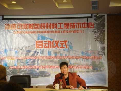 在贵州省、遵义市各级政府部门的推动下,由公司与遵义市大康绿色产品有限公司联合组建的“贵州遵义渝康可降解包装材料工程技术中心”,于2008年10月26日上午,在遵义大世界酒店举行了隆重的启动仪式。
