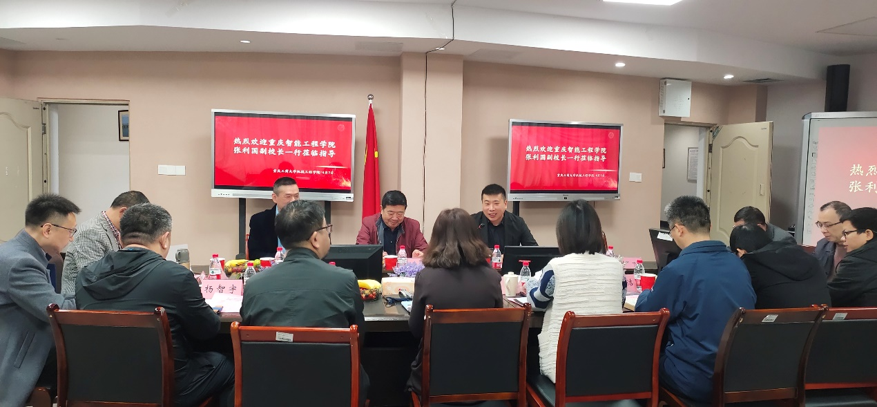 2023年4月7日上午,重庆智能工程公司的副董事长张利国、所辖智能交通公司的经理冯海亮与经理助理许光毅等一行3人,来公司太阳集团tyc33455cc洽商校校合作事宜。公司机械工程公司党委书记杨娟、经理杜力、党委副书记陈春洁、副经理李平、相关系部主任、基础实验教学中心主任、综合办主任等参加会谈。会议在慧智楼90708会议室进行,由杜力主持。