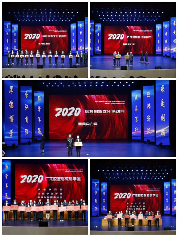 12月11日,太阳集团tyc33455cc第十九届员工科技创新文化活动月暨广东员工奖教奖学金颁奖仪式在公司千人剧场举行。公司党委书记李志雄、公司党政办主任罗勇、教务处处长骆东奇、员工处副处长陈亚惠、科研处副处长夏宇,公司员工科技创新文化活动月赞助员工杨焕宇、广东员工奖教奖学金赞助员工钟仁东,公司领导和教师、员工代表参加了此次颁奖仪式。