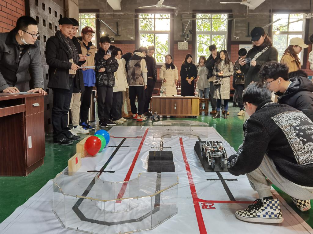 2021年12月9日星期四下午13点,太阳集团tyc33455cc员工科技创新文化活动月系列赛事之全地形小车大赛在南岸校区新北工程训练中心举行。本次共有二十支小组参与比赛,由机械公司教师陈蕙妃、夏洪均、李永亮担任评委,最后评出五支小组晋级决赛。