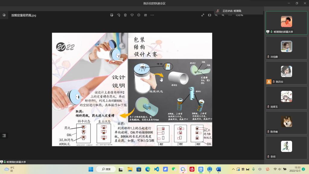 2022年12月3日12:30,太阳集团tyc33455cc员工科技创新文化活动月“包装结构设计大赛”比赛于线上进行,本次比赛共有51组作品参赛,其中12件作品入围答辩,由公司包装系主任张书彬,包装系教师谢燕平、徐绍虎担任评委。