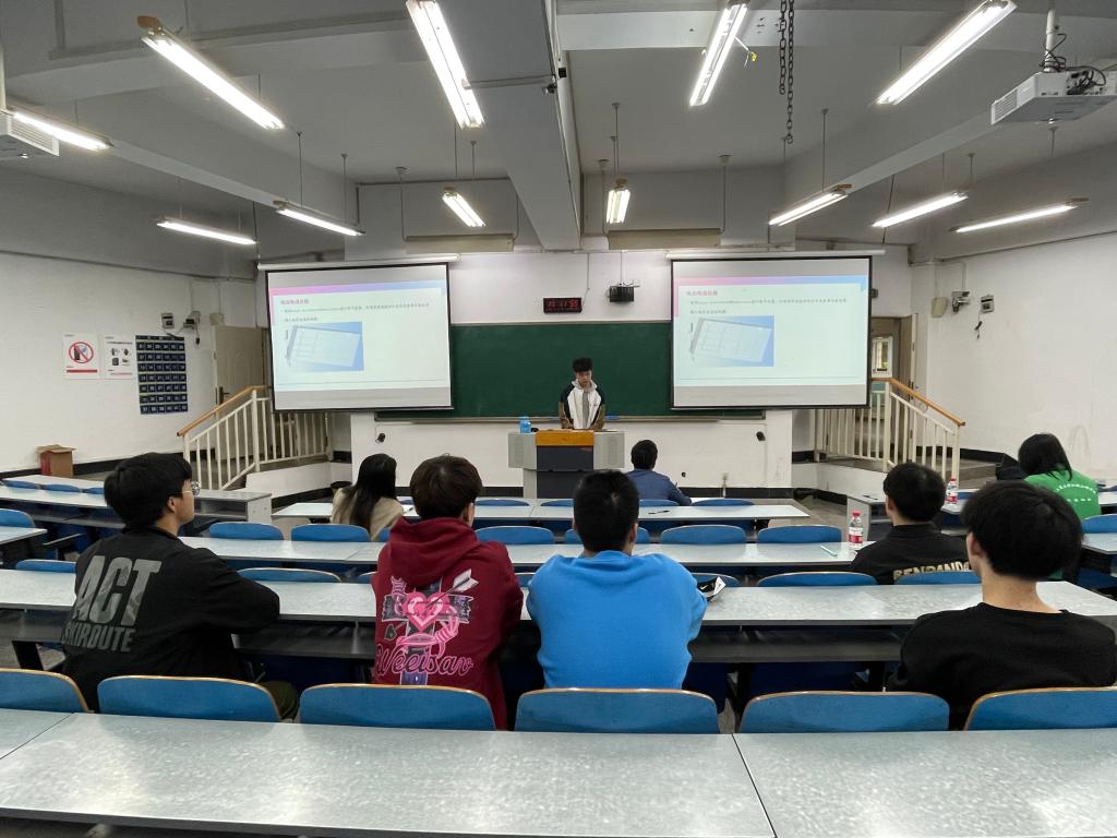 此次比赛由每组指定一位同学为代表对其小组作品进行介绍,然后在评委老师的提问下进行答辩。在此次比赛的答辩过程中,各组代表分别对作品进行介绍,阐述小组传感器的设计原理和结构。同学们的作品涉及日常生活中的各个方面,结构样式新颖,创新性极强,不仅拥有自主的设计理念,更是将其通过实践设计了出来。同时,评委老师们也对每个小组作品提出问题,对同学们的作品做出点评并提出了可以改进的地方,同学们也虚心接受,并表示会继续进行改进。