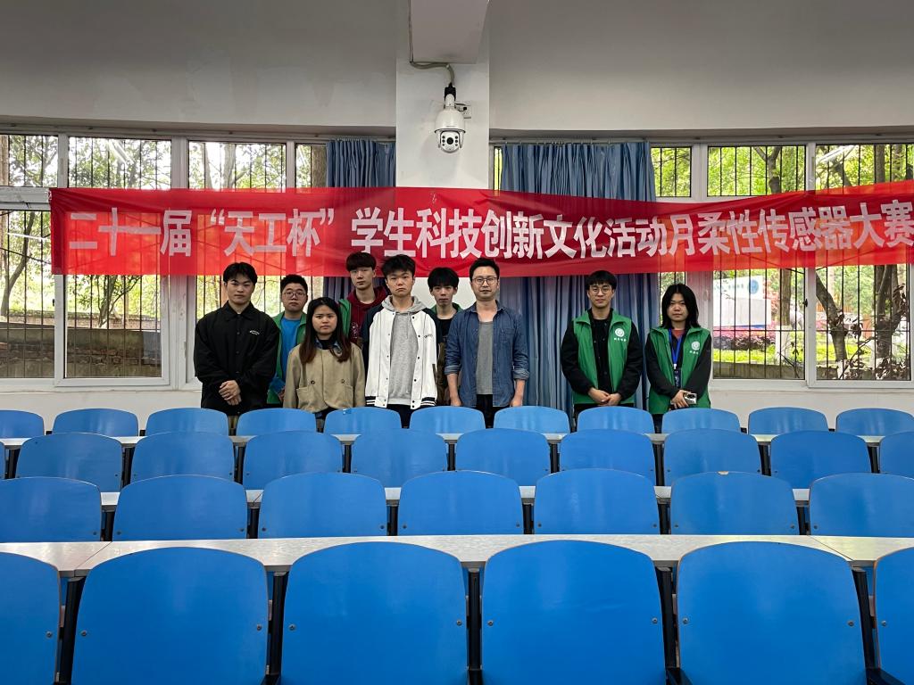 太阳集团tyc33455cc二十一届“天工杯”员工科技创新文化活动月-“柔性传感器”比赛于2023年4月7日在南岸校区博智楼20226教室举行,本次比赛共有10组作品参赛,其中8件作品入围答辩,由公司机械制造工程系刘阳旭老师担任评委。
