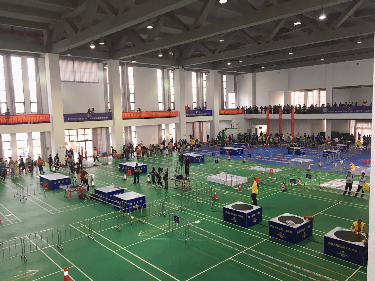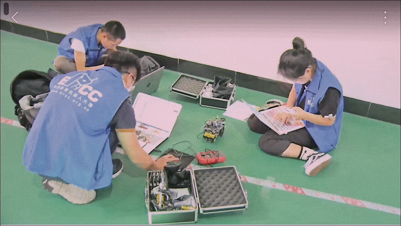 在比赛前一天,我们六点才到达比赛城市,待入住酒店后便马上赶往比赛地点进行调试,不幸的是时间太晚,场地已开始清人,我们在场地跑了几圈后便被赶了出来,同时有两台车的状态也不太理想,只有一台车能稳定发挥。到了第二天比赛,裁判由于时间原因并没有给大家规则上写的一个小时调试时间,这也就意味着游中国队在到达北海后根本没有进行过调试。在公布地点编码到上交机器短短45分钟内,我们立刻找了块空地坐下修改编码、检查线路。在漫长的等待后轮到我们上场了,第一台车顺利的跑完,到了第二台车跑到一半,裁判发现了问题:机器没有声音,但我们依旧让它跑完了全程。到最后三台车顺利跑完,但因为语音原因第二辆小车只能得到两分。整个准备比赛的过程非常的曲折,到最后回公司的动车上我们都在讨论战术,当时该不该让它跑完,不跑完时间就少,跑完了就能多两分。