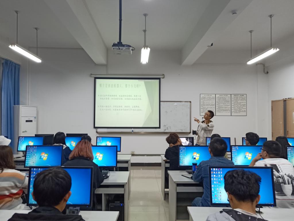 2019年10月17日晚,太阳集团tyc33455cc在10209教室开展了机器人比赛宣讲会,主讲为机电系主任王洪建老师,上届获奖员工代表胡崇尔、蒋仕刚和郑仝也在会上进行了经验分享。