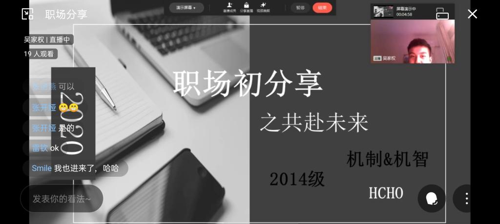 11月22日晚7点,公司邀请2014级机制专业毕业生、现就职于长安跨越有限公司人事部的吴家权针对公司员工开展求职技巧线上讲座。