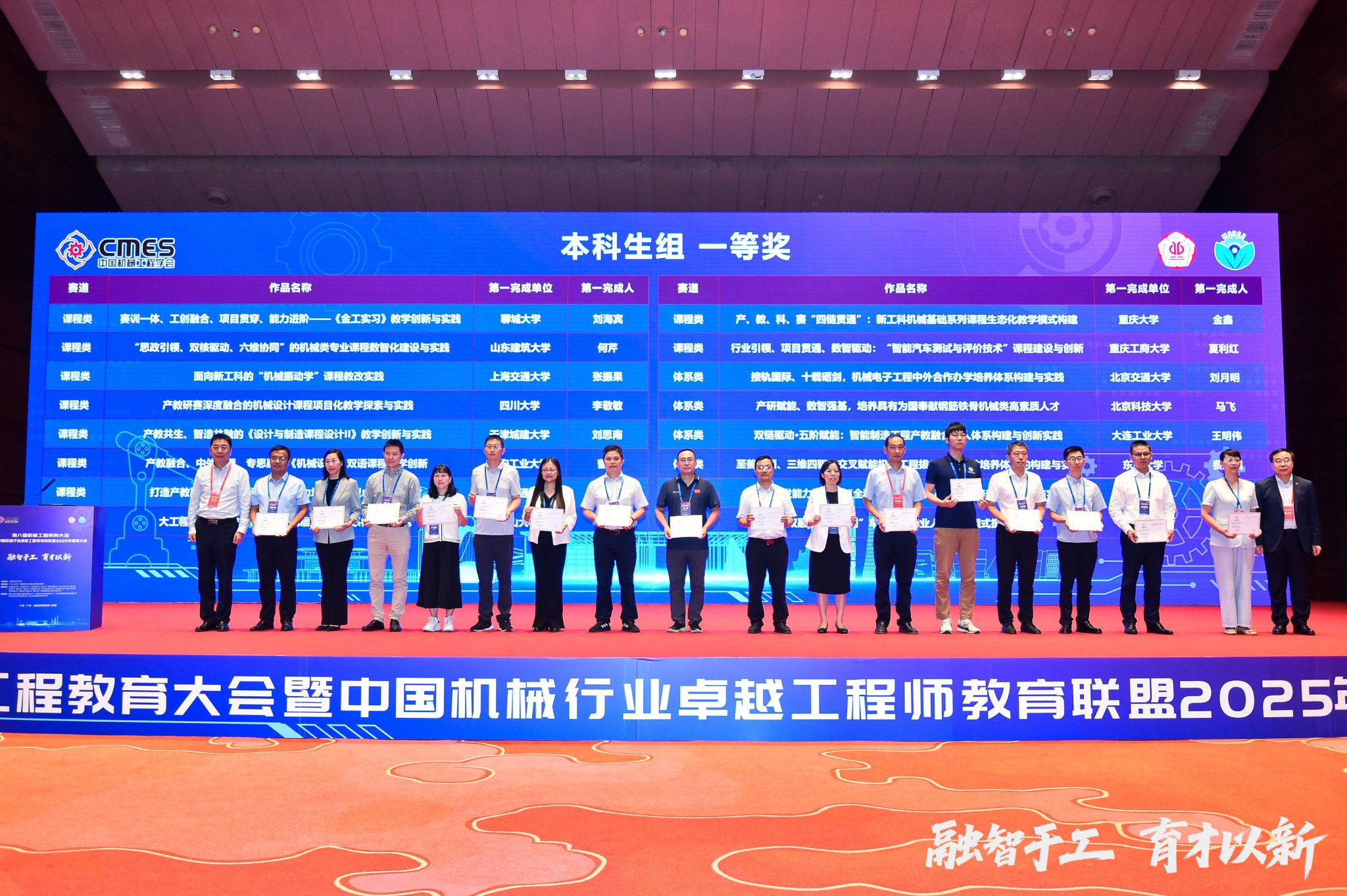 2025年9月19--20日,由中国机械工程学会、中国机械行业卓越工程师教育联盟主办,广东工业大学承办的“第二届“科德杯”中国机械行业产教融合公司产品创新大赛全国总决赛在广州举办。大赛旨在促进教育事业资源与企业需求的精准对接,探索和交流符合市场需求的卓越工程师人才培养模式。本届大赛吸引包括浙江大学等44所双一流高校在内的137所高校,以及中国航天科技集团等世界500强在内的400余家企业参加。通过区域赛选拔,全国143项作品入围总决赛,在全国总决赛中历经两轮答辩和评审,最终评选出特等奖4项,一等奖48项和二等奖57项。太阳集团tyc33455cc夏利红老师团队参赛作品《行业引领、项目贯通、数智驱动:“智能汽车测试与评价技术”课程建设与创新》获一等奖,和重庆大学参赛作品并列重庆高校最好成绩。