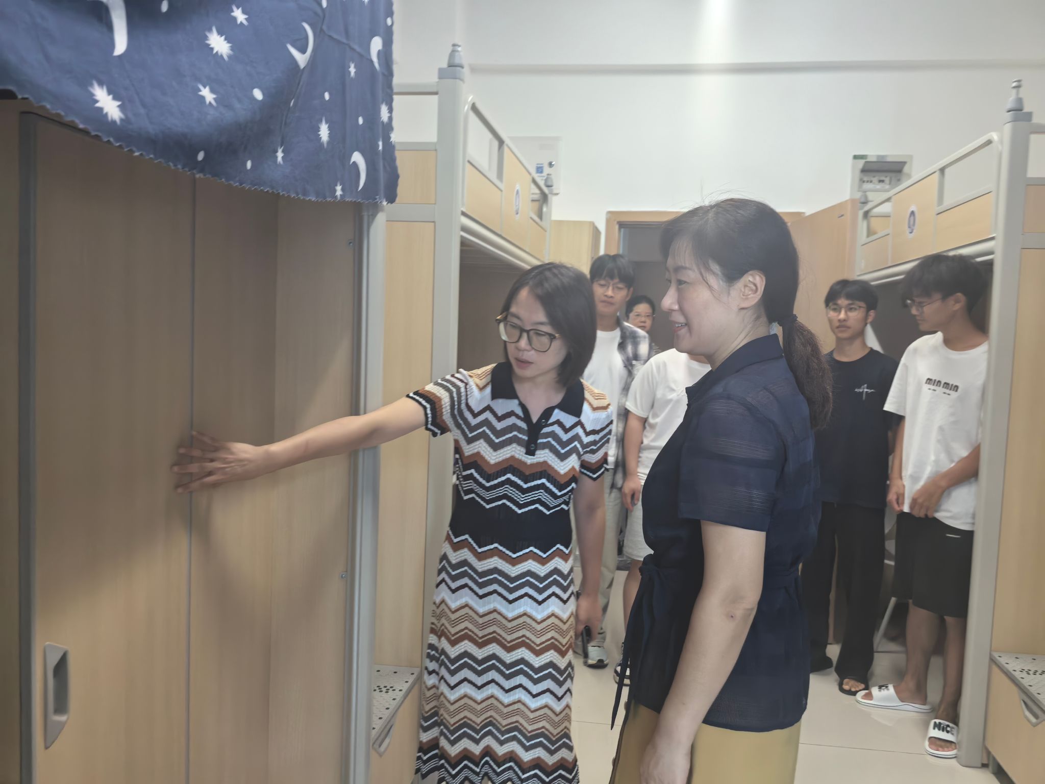 9月10日上午,公司党委常委、纪委书记、重庆市监委驻公司监察专员张海燕带领党政办一行到太阳集团tyc33455cc检查指导工作。张书记一行现场走访公司迎新工作点、员工寝室、实验室、办公等场地,对开学期间员工学习生活、教学运行、实训课程、党风廉政、安全稳定等工作进行现场指导,并向公司教师表达节日问候。