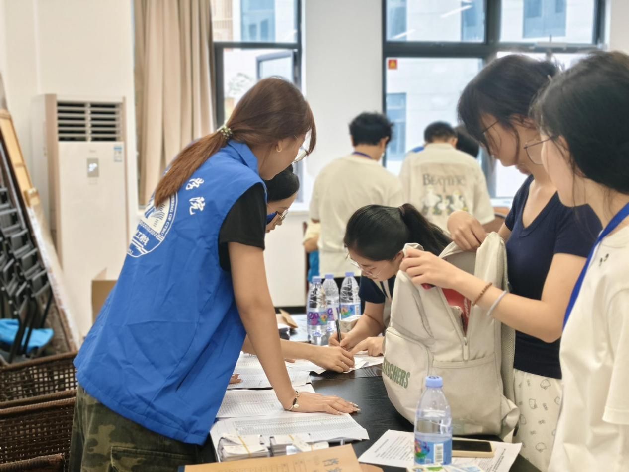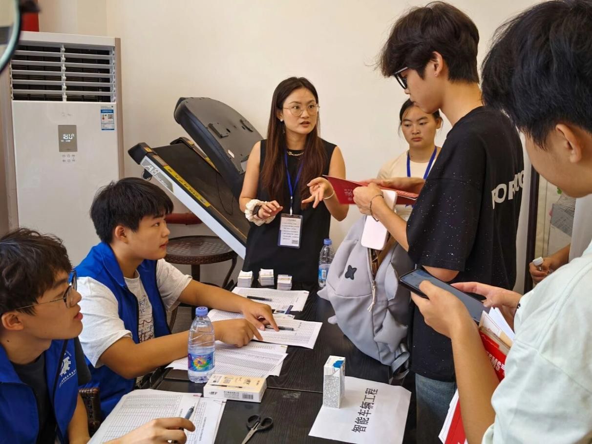 随着正午临近,气温逐渐升高,但志愿者们仍坚守岗位,没有丝毫懈怠。公司定时送冰镇饮用水、藿香正气水等防暑物资,在10号楼设临时休息区。下午1时,新一轮新生报到高峰到来,经过短暂的休息过后,志愿者们迅速调整状态,再一次投入到迎接新生的工作中。