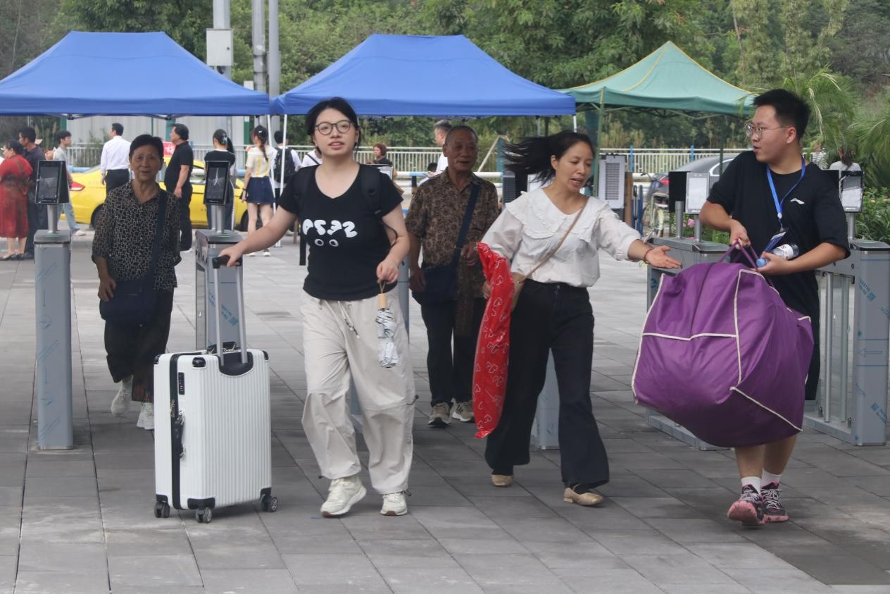 清晨7时,公司迎新志愿者陆续抵达指定集合点,在领取工作证后前往1号门、2号门等关键点位。公司各个点位设有醒目标识,备有饮用水、应急药品等物资。8时许,首批新生及家长到校,志愿者主动上前迎接,带领新生及家长进入校园。