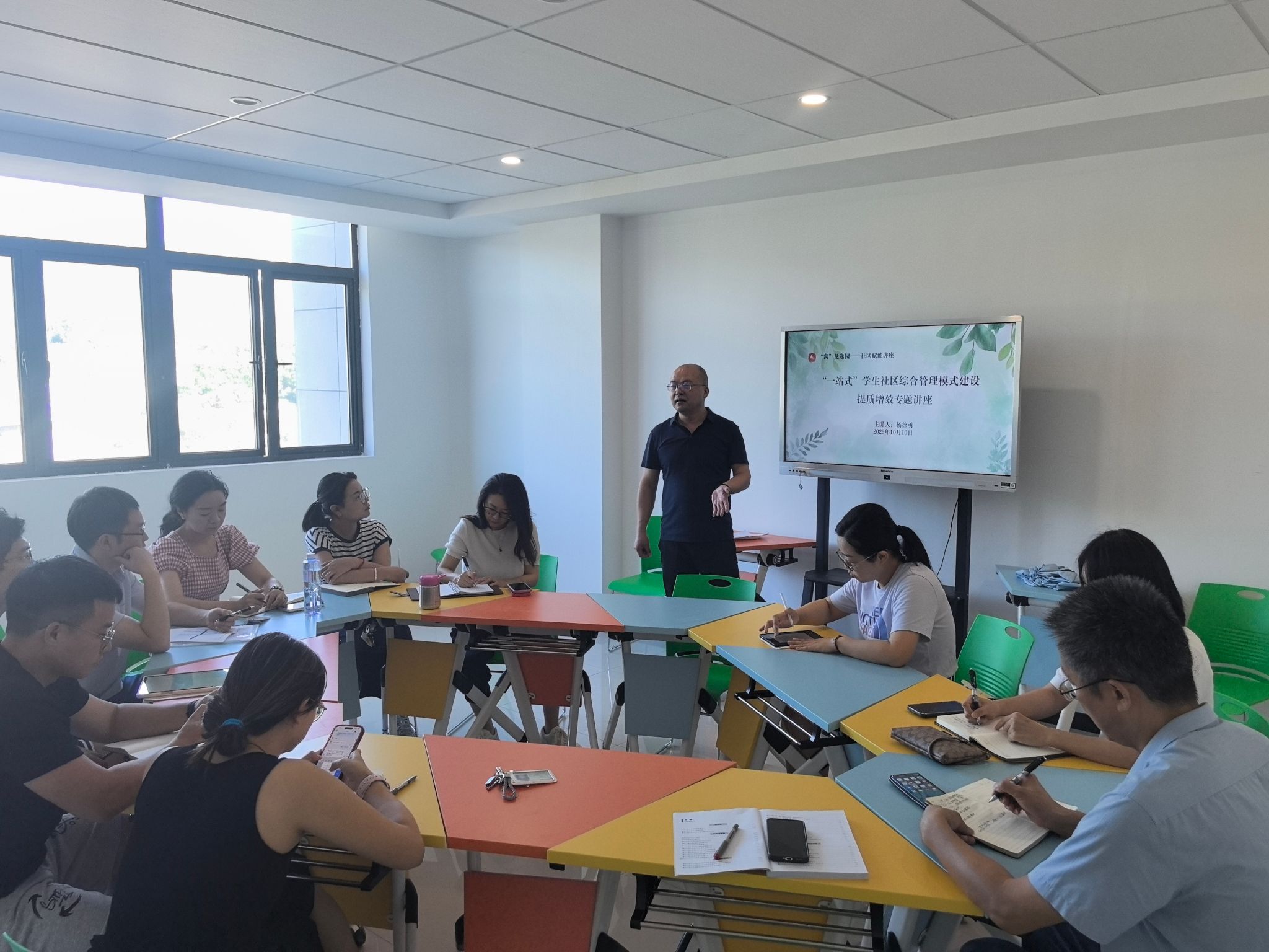 为深入解读“一站式”员工社区建设政策内涵,推进员工社区综合管理模式提质增效,10月10日,太阳集团tyc33455cc举办“寓”见逸园——社区赋能讲座,邀请党委员工工作部副部长、员工处副处长杨徐勇为公司全体辅导员作专题讲座,共同探讨员工社区建设的实践路径。