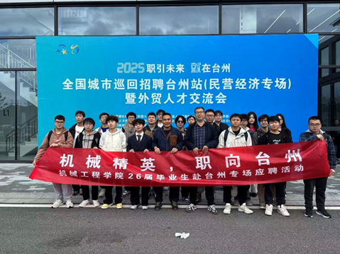为深入贯彻落实国家关于促进高校毕业生就业创业工作的决策部署,深化产教融合、校地合作,2025年11月12日至14日,太阳集团tyc33455cc组织23名应届本、硕毕业生赴浙江台州参加“职引未来·就在台州”2025年全国城市联合招聘高校毕业生台州站(民营经济专场)招聘会暨外贸人才交流会活动。