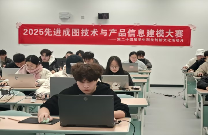 比赛现场气氛紧张而热烈:选手们早早抵达赛场,调试设备、熟悉操作环境,为赛事做最后准备。随着赛事负责人一声令下,选手们迅速进入状态,全神贯注地投入到绘图与建模中——指尖在键盘与鼠标间快速操作,屏幕上逐渐呈现出精准的工程图纸与立体模型,显示出学子们扎实的专业技能。