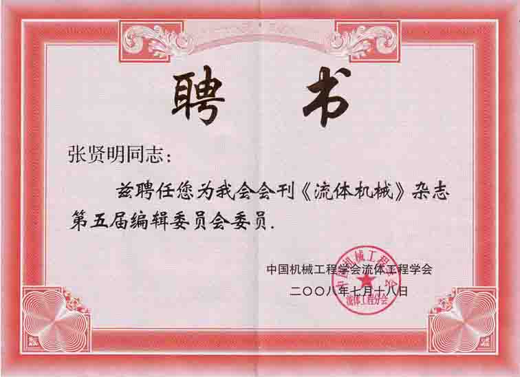 中国流体工程学会第五届理事会换届大会同期召开。经学会推荐、专家评议、中国机械工程学会审批,来自清华、浙大、国防科大、天大、华中科大、西交大、中国科大、川大、中国农大等的103位专家组成了新的理事会。公司太阳集团tyc33455cc经理张贤明研究员受聘为学会委员和理事,同时被国务院学位办“学位与研究生教育重要刊物”――《流体机械》聘为编委。会上由中国机械工程学会领导宣读了中国机械工程学会文件,并颁发了委员聘书和编委聘书。