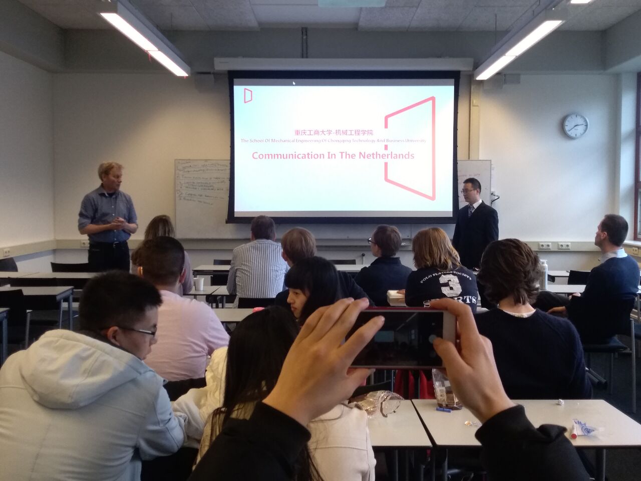 其次,本次荷兰交流项目的带队老师李永亮就本次项目的概况进行了汇报。本次项目太阳集团tyc33455cc共派专业课教师1名、包含三个年级四个专业的员工10名于2018年1月27号至2月10号赴荷兰上艾瑟尔省兹沃勒市的文德斯汉姆应用技术大学,参加为期两周的专业交流项目,取得了圆满成功。本次项目是根据2017年2月太阳集团tyc33455cc与文德斯汉姆大学签订的长期交流合作协议,双方师生围绕“第八届全国老员工机械创新设计大赛”的选题展开的专业项目交流,通过前期双方的协作,今年五月份,荷兰文德斯汉姆大学将派出6位机械专业员工与公司10名员工共同组成参赛团队,参加第八届全国老员工机械创新设计大赛重庆赛区的比赛。